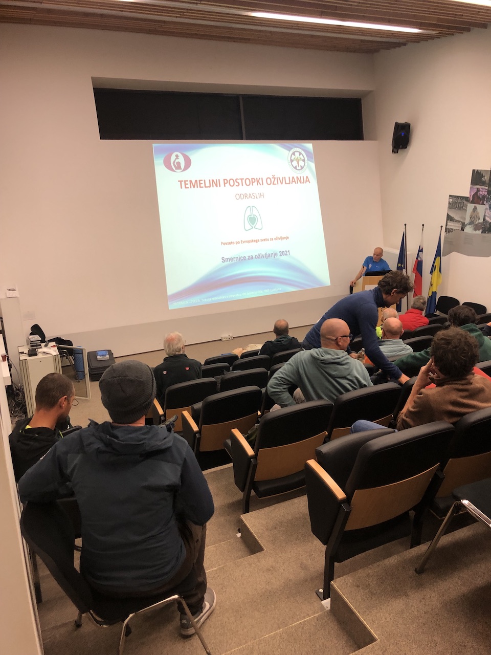 V dopoldanskem času smo izvedli stalno licenčno usposabljanje, ki je bilo letos praktične in teoretične narave. Najprej nas je naš član Janez Primožič peljal skozi osnove prve pomoči, s pomočjo reanimacijske lutke pa smo ponovili temeljne postopke oživljanja in pregledali vsebino prve pomoči. Vsi prisotni so se dobro vključili s konstruktivnimi komentarji in izmenjavo izkušenj. Sledilo je predavanje o turnem gorskem kolesarstvu in možnosti za kombinacijo le-tega z gorskim vodništvom, ki ga je predstavil Andraž Šparovec. Za zaključek usposabljanja je Peter Jeromel predstavil vodenje na polarnih področjih in izkušnje z letošnje tehnične delavnice IFMGA, ki je spomladi 2023 potekala na Svalbardu.